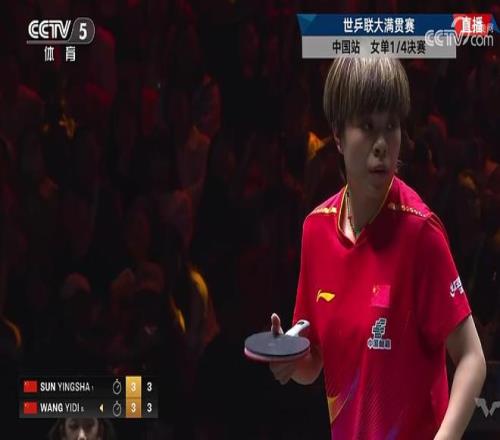 孙颖莎43战胜队友王艺迪,晋级中国大满贯女单四强 懂球帝 2025-10-04 00:59:58 10月3日,WTT中国大满贯女单1/4决赛,孙颖莎4-3(14-12、4-11、11-6、7-11、12-14、11-3、11-8)战胜队友王艺迪,晋级四强。孙颖莎半决赛的对手是陈幸同和朱雨玲之间的胜者。 上一篇: 阿昺引球迷担忧,小商小布为球迷挽尊,美国人提前锁定一决赛席位下一篇: 斯瓦泰克公开粉丝&赌徒骚扰信息:体育界的现实令人悲伤