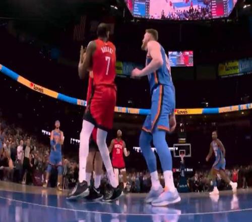 雷速体育10月23报道 昨日NBA揭幕战火箭历经双加时124-125不敌雷霆。比赛到加时赛最后时刻,杜兰特在火箭已经没有暂停的情况下疑似叫暂停裁判未予理睬。