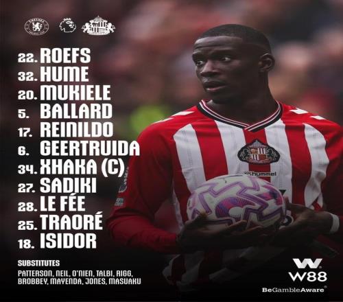 北京时间10月25日22:00,英超第9轮,切尔西主场对阵桑德兰。赛前首发公布。