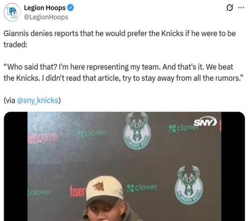 赛后字母哥也再次公开回应自己愿意加盟尼克斯的交易流言,直接予以否认。