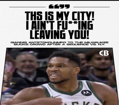 在连续送出不可思议的封盖与灌篮后,兴奋字母哥对着全场球迷怒吼:“这是我的城市!我永远都不会离开!”