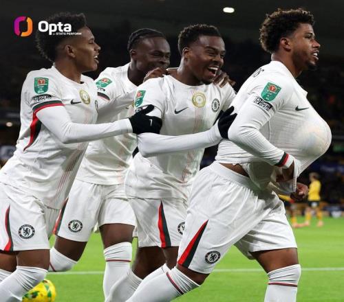 英联杯第四轮,切尔西客场4-3击败狼队,4粒进球均由21岁及以下球员打进,切尔西创造了英超球队纪录。