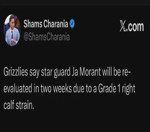 前几天灰熊100-108不敌马刺的比赛,莫兰特在此役首节遭遇右小腿一级拉伤,至少需要休战两周时间,他已连续两场高挂免战牌,包括如上所述球队大胜国王的比赛。
