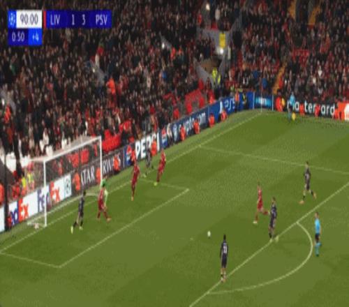 开场仅仅4分钟,利物浦被判了点球,一次角球防守,范戴克禁区高高举手挡下了皮球,随后佩里西奇主罚命中,帮助埃因霍温客场1-0取得梦幻开局。