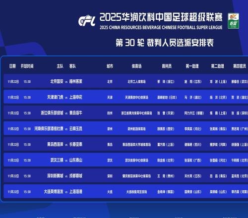 官方:韩国籍裁判执法海港客战英博,日本籍裁判执法申花客战津门虎